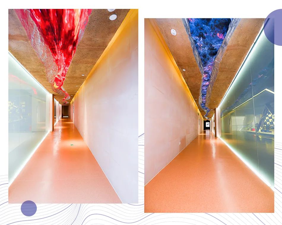 鳳凰之眼背后的陳列柜跟鳳凰的眼睛有光之間的互動,跟隨眼睛屏幕的顏色發生變化,科技感十足。