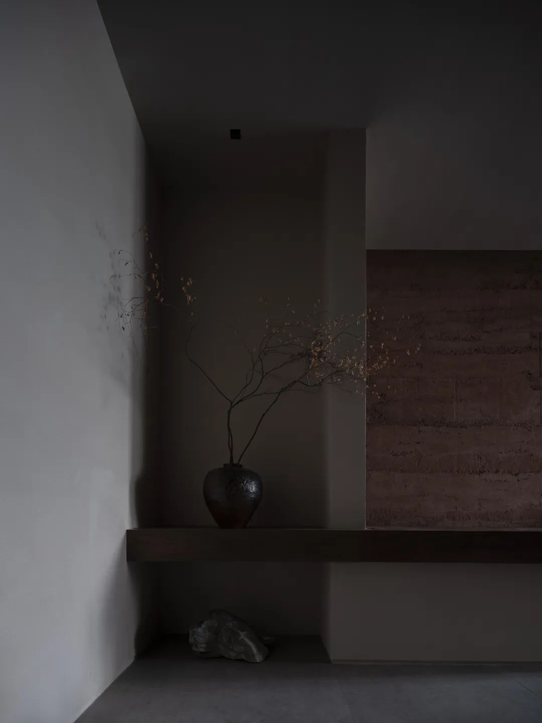 墻面夯土的自然紋理與大地的淳樸遙相呼應,充滿歲月和藝術美感,展現內斂超然,張弛有度的設計美學。