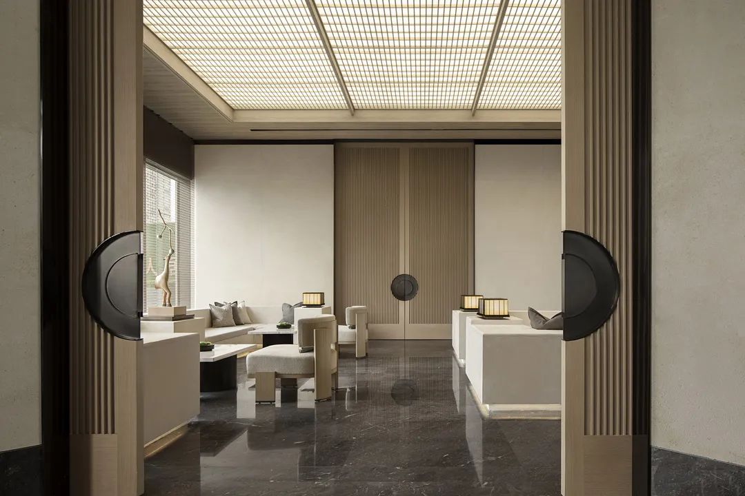 設計以光線作為設計,從序列感的形式出發,將宋氏建筑風格引入到空間內,無限接近人們的心靈空間,希望通過空間的沉浸體驗,賦予參觀者大隱隱于市的體驗感,原始與新生的沉靜體驗,不同文化融合后的新意風格,重新給予空間生命,讓其呈現超越之美。